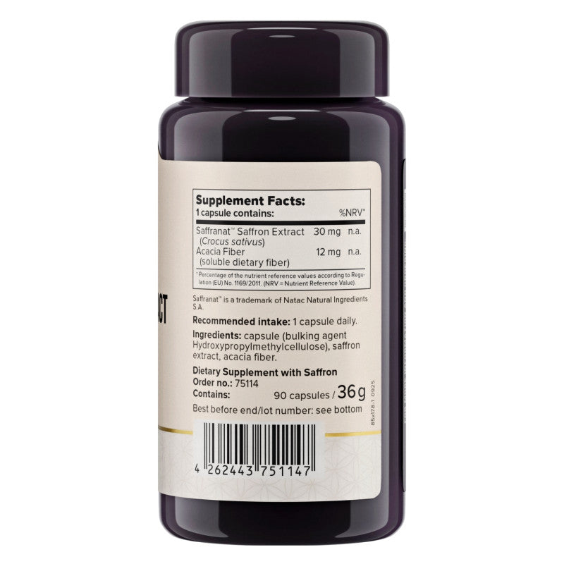 El azafrán contiene compuestos vegetales naturales como la crocina y el safranal, que contribuyen a su aroma, color y carácter distintivo. Muchas personas aprecian el extracto de azafrán como un complemento de alta calidad para su dieta diaria.